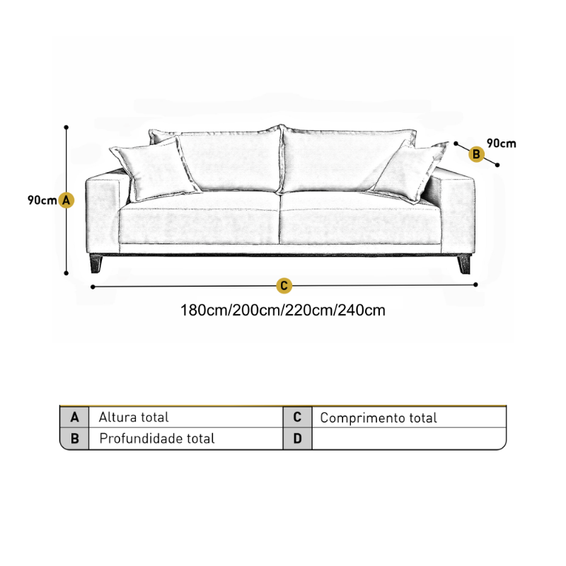 - Tipo de encosto: Almofada solta com fibra 100% siliconada.
