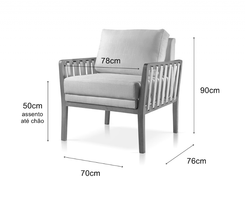 O encosto é de almofada solta com interior de fibra 100% siliconada.