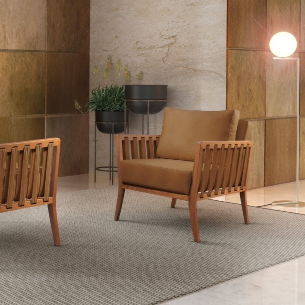 Com detalhes em tiras de tecido nas laterais, a poltrona Lua se resume em charme, elegância e qualidade. Um modelo que une conforto e beleza para o seu ambiente.