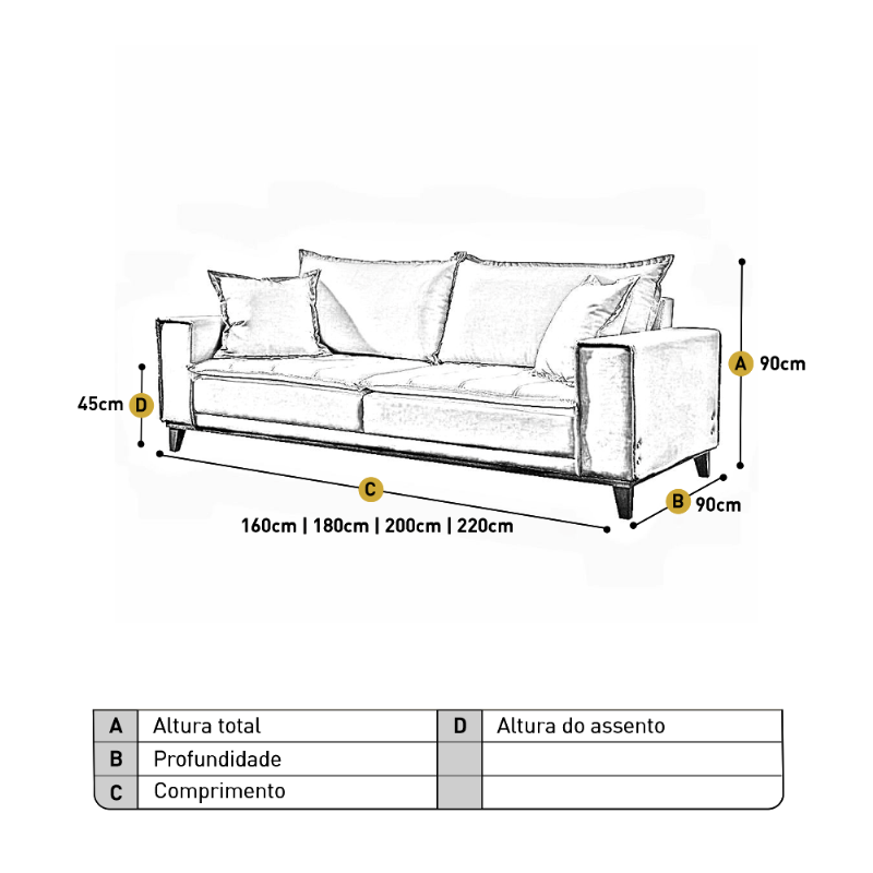 Sofá Margot com design elegante que combina a base de madeira, com o pillow top do assento, as almofadas de encosto, finalizando com o debrum no acabamento e o detalhe dos botões nas laterais. O resultado é uma peça linda que se adequa bem a diversos estilos e deixará seu ambiente moderno e confortável!