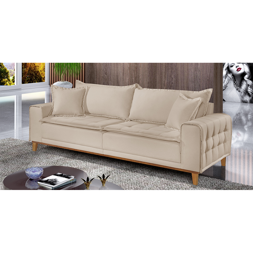 Com um visual elegante e moderno, o sofá Carol conta com detalhes que valorizam o seu ambiente. Composto com capa nos braços, a base inteira com pés delicados, almofadas e o assento com pillow top capitonê, esse tipo de móvel oferece um maior conforto e beleza.